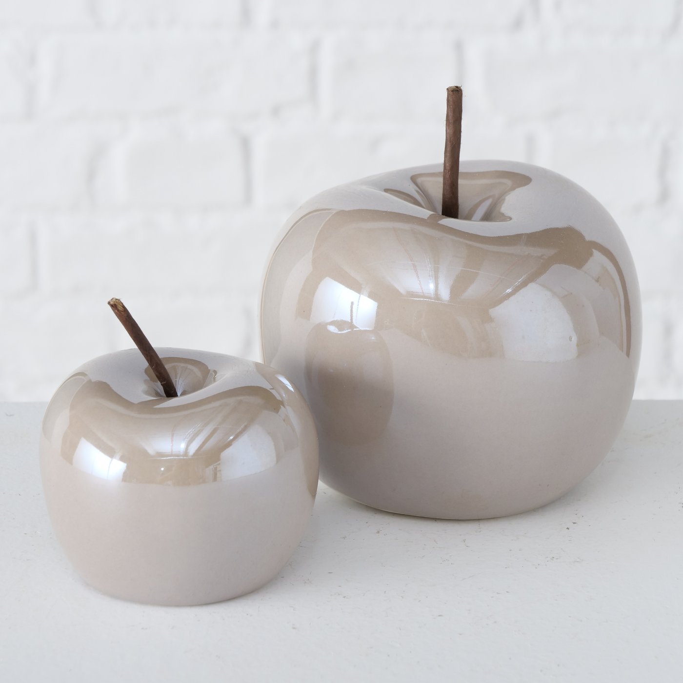 2er Set Dekoapfel Perly hellbraun