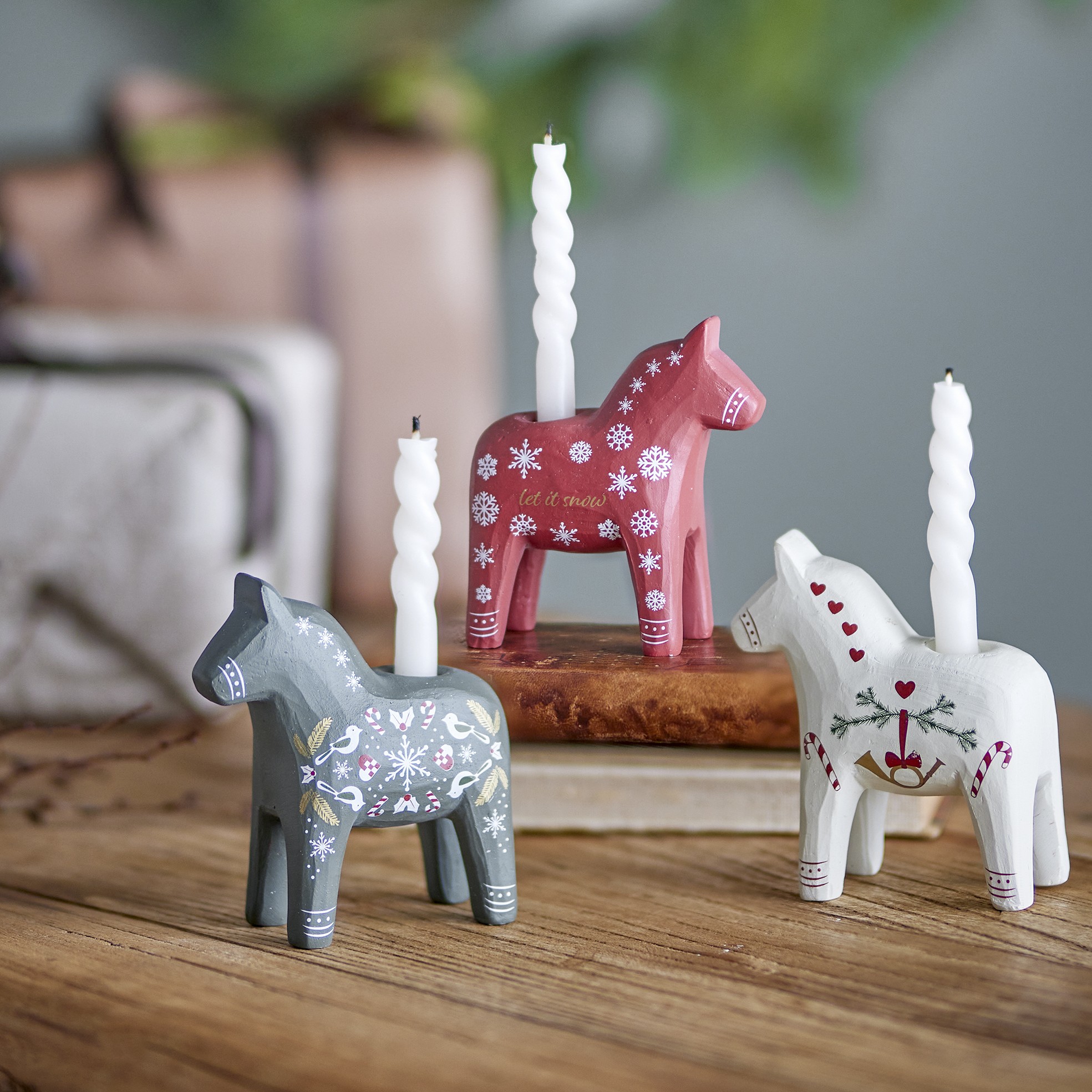 Absolute Hygge Empfehlung zu Weihnachten! Das klassisches skandinavische Pferd als Kerzenhalter für dünne (1,2 cm) Kerzen im Dreierset.