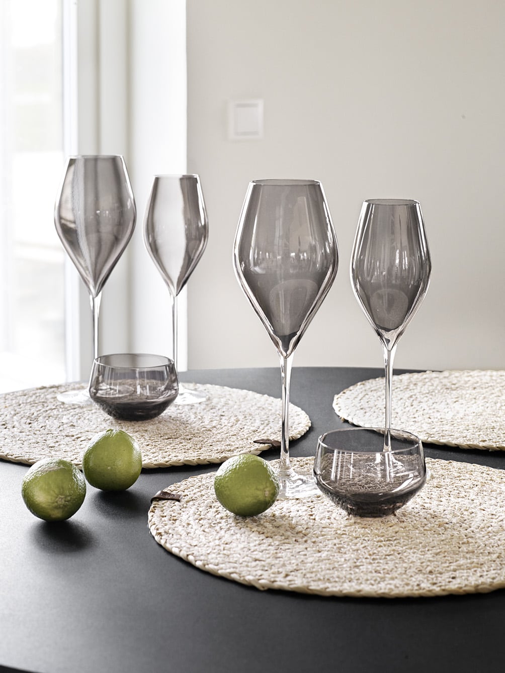 Dünnes, sehr schön geformtes Wasserglas in Rauchglas in hoher Qualität. Set mit 4 Stk.
