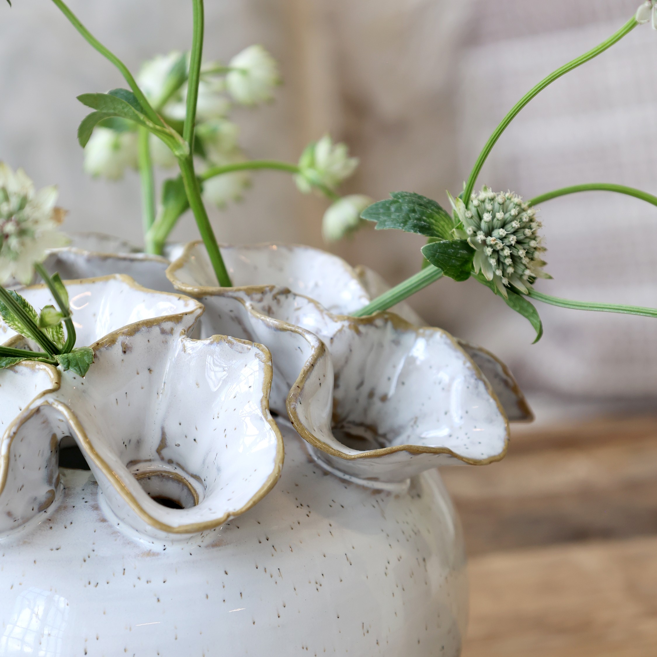 Außergewöhnliche Blumenvase mit 12 Löchern für Blumen. Damit lassen sich bezaubernde Blumenarrangements zaubern.