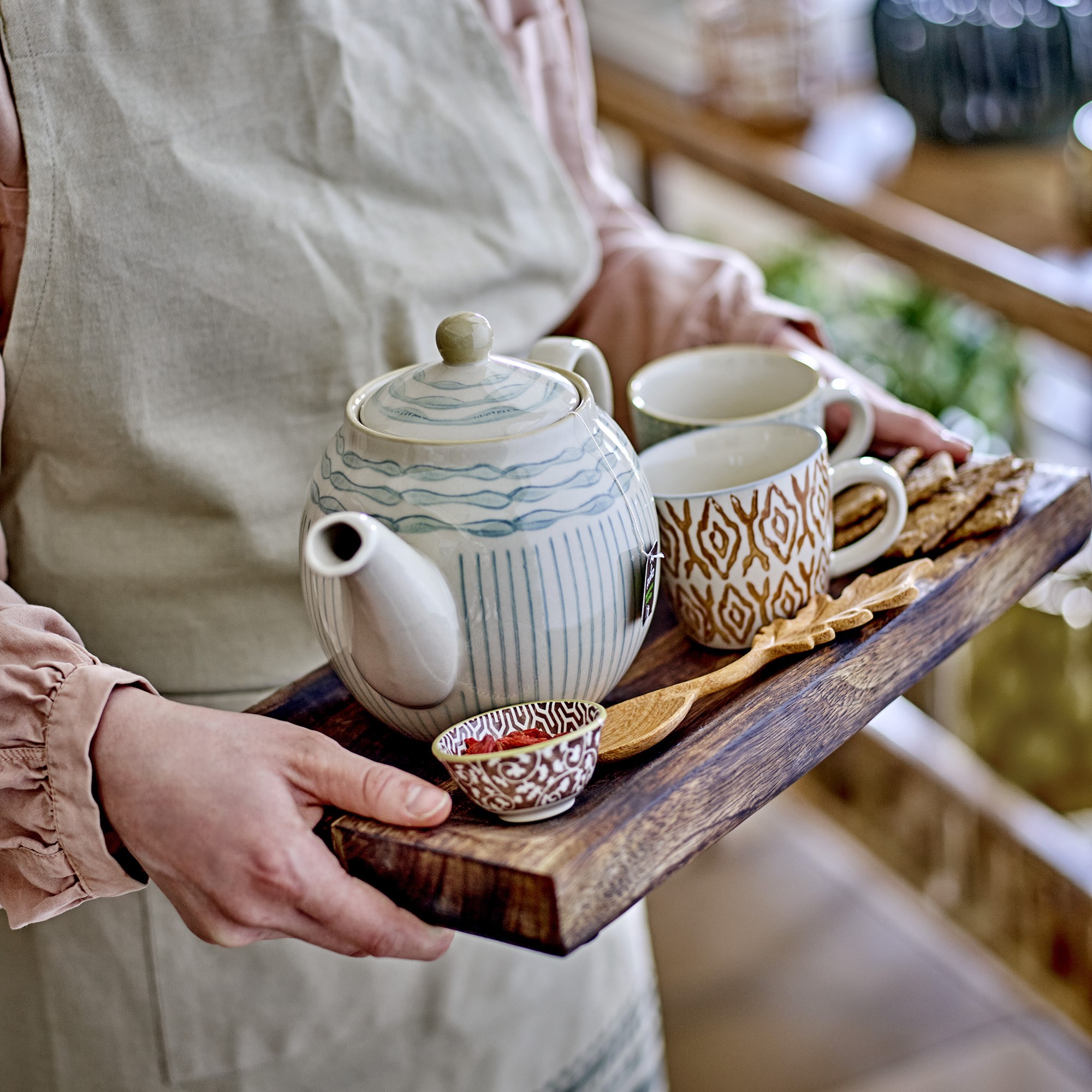 Ist es ein Tablett oder eine Schale? Egal! Nutzt es als Holztablett zum Servieren oder Transportieren oder auch als Dekotablett, oder einfach als Schale für diverse Utensilien, Deko oder auch Gebäck. Warmes, dunkles Mangoholz mit kleinen "Füßen" und schrägem Rand. Einfach wunderschön.