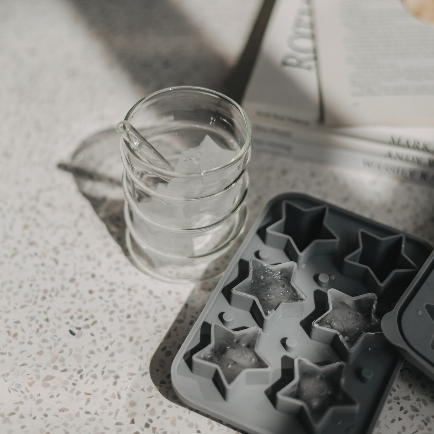 Eiswürfel in Sternform für die Weihnachtsparty. Denn wer liebt es nicht, mit einem kühler Drink mit klirrenden Eiswürfeln im Glas den Abend ausklingen zu lassen?