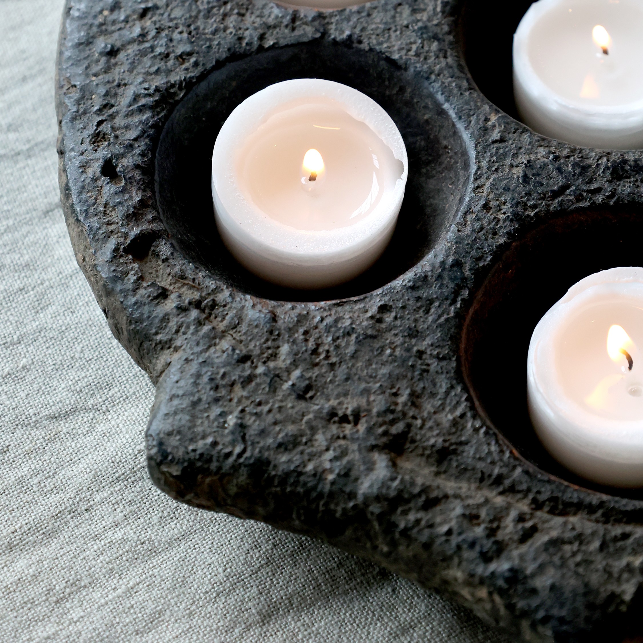Wunderschöner, antik schwarzer Teelichterhalter in schwerer Ausführung aus Stein.