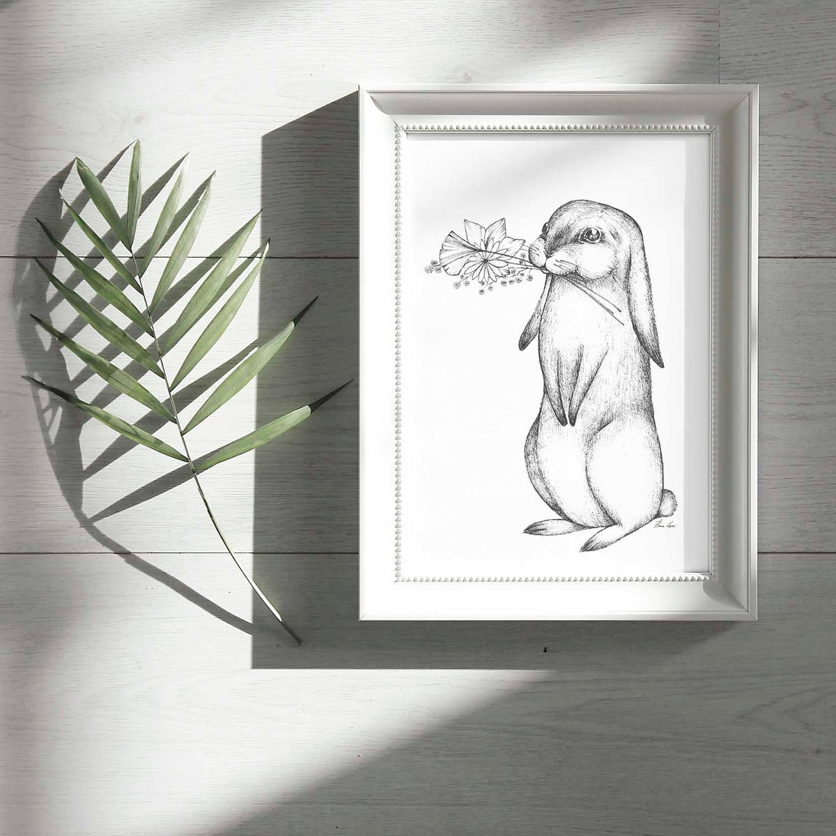 Produktinformationen "Kunstdruck - Blumenhäschen Size: A4,color: beige, black, silver, white"