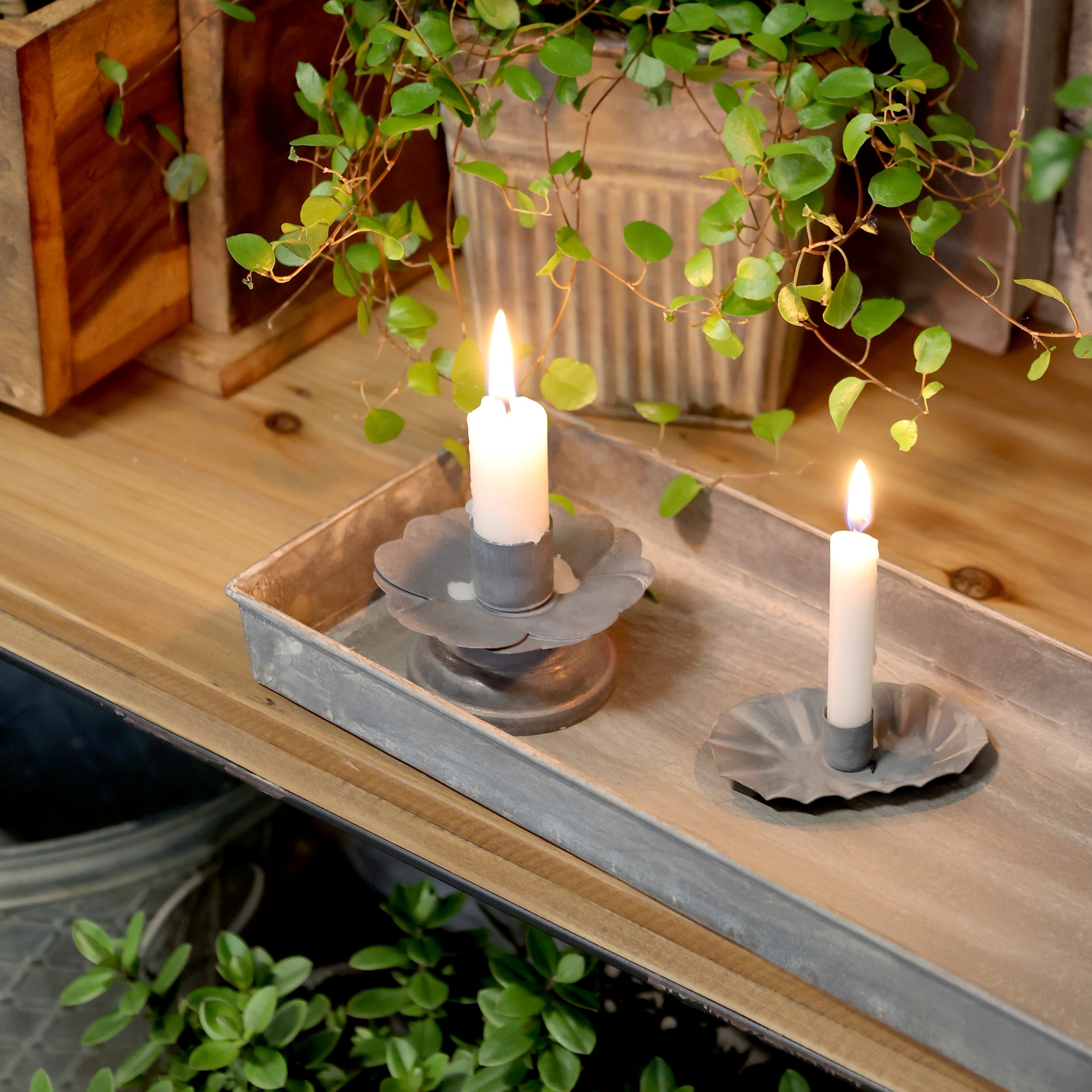 Kleiner Kerzenhalter in Antique Zink. Oval und absolut entzückend zu dekorieren.