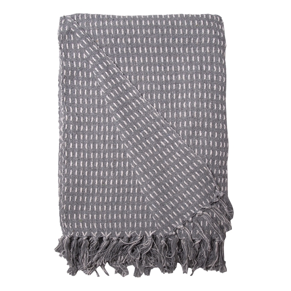 Diese Decke ist in einem hellem Grau-Blau mit Natur gewebt.
