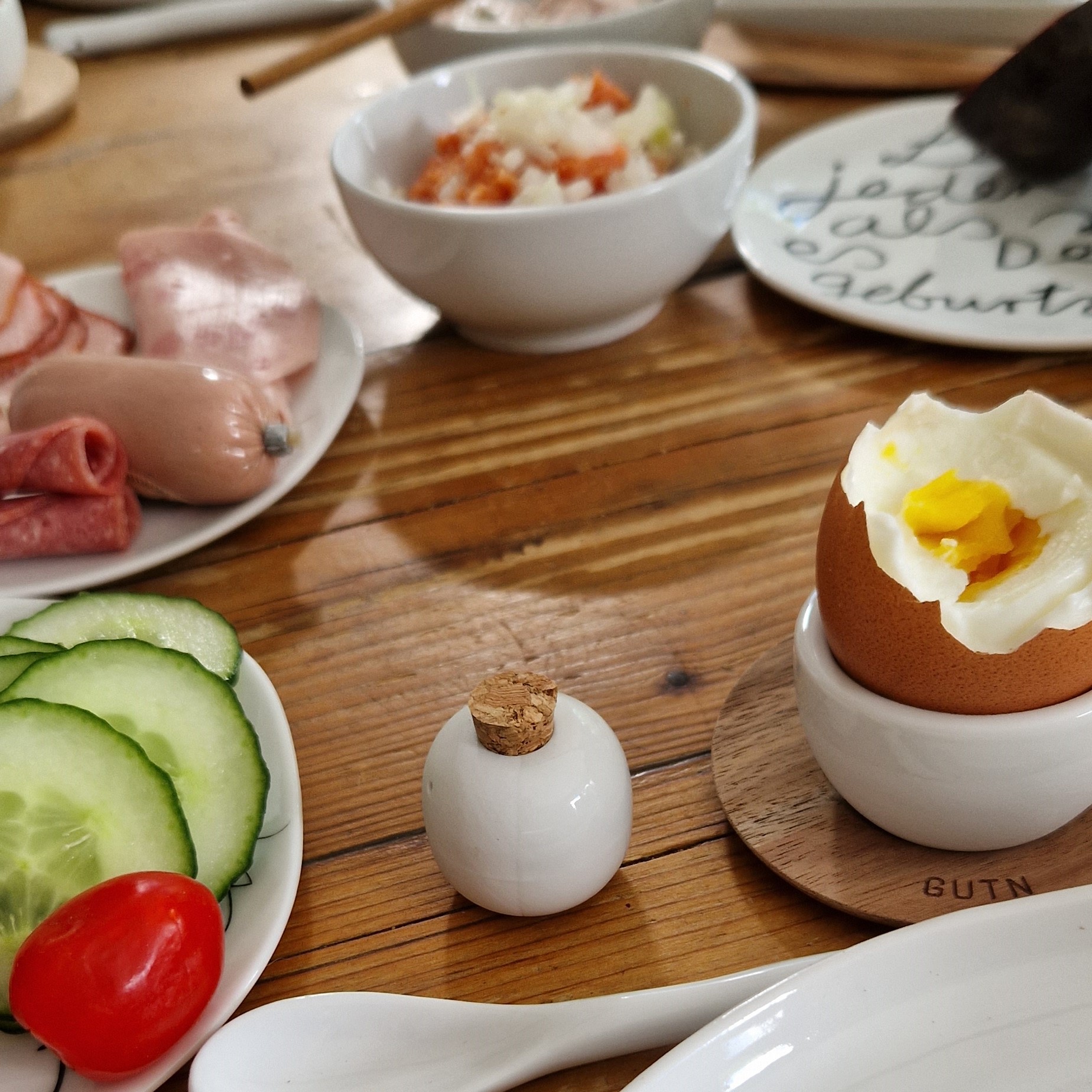 Entzückende kleine Salzstreuer von Räder. Perfekt für das Frühstücksei. So klein, die finden auf dem kleinsten Tisch noch Platz.