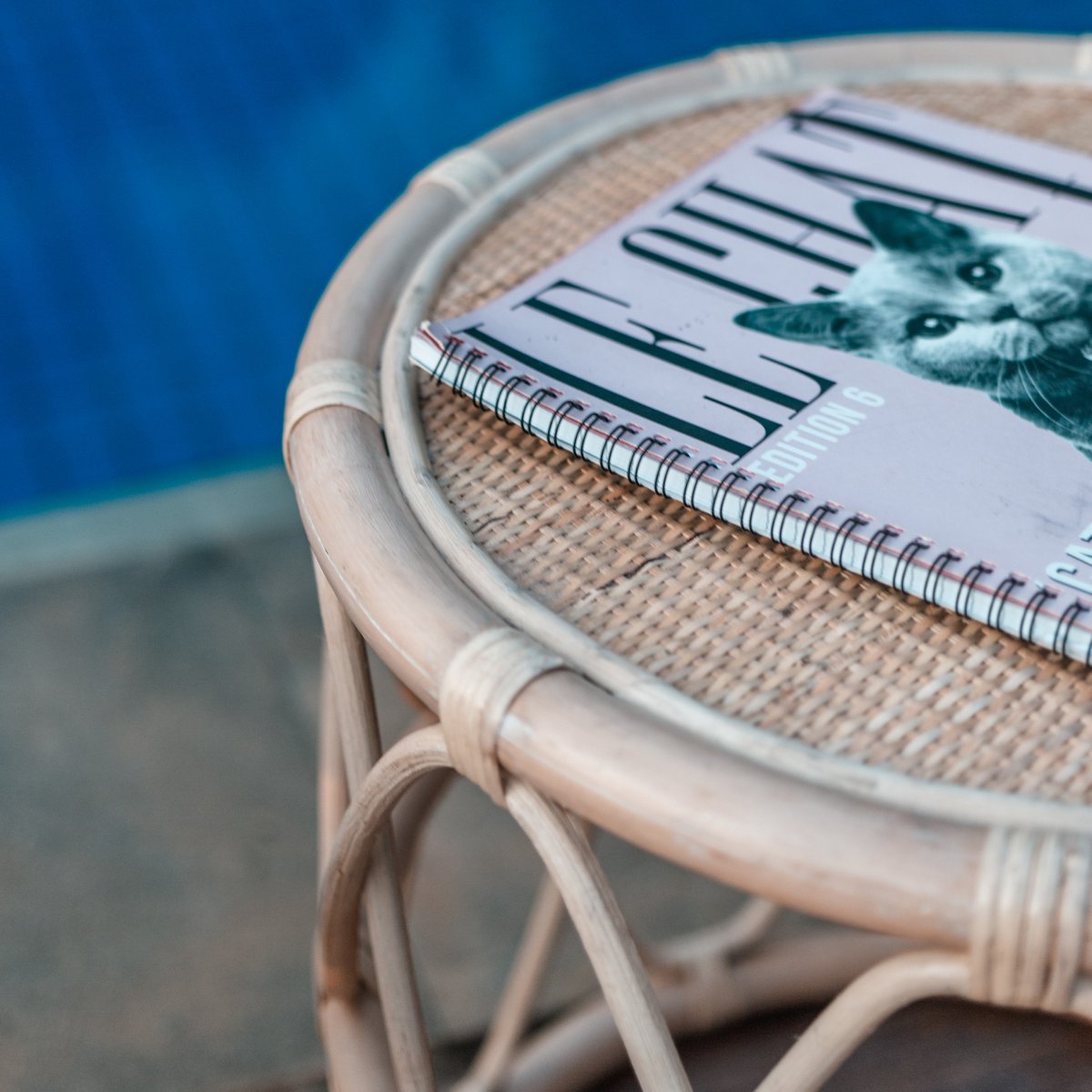 Der Herstellungsprozess dieses Tisches ist aufwändigste handwerkliche Arbeit: Um die dicken Rattanfasern flexibel zu machen, müssen sie eine Nacht lang in Wasser eingeweicht und kurz vor der Verarbeitung stark erhitzt werden. Aus diesem Grund wird dieses Material seltener verwendet als beispielsweise Holz – aber das Ergebnis kann sich auf jeden Fall sehen lassen.
