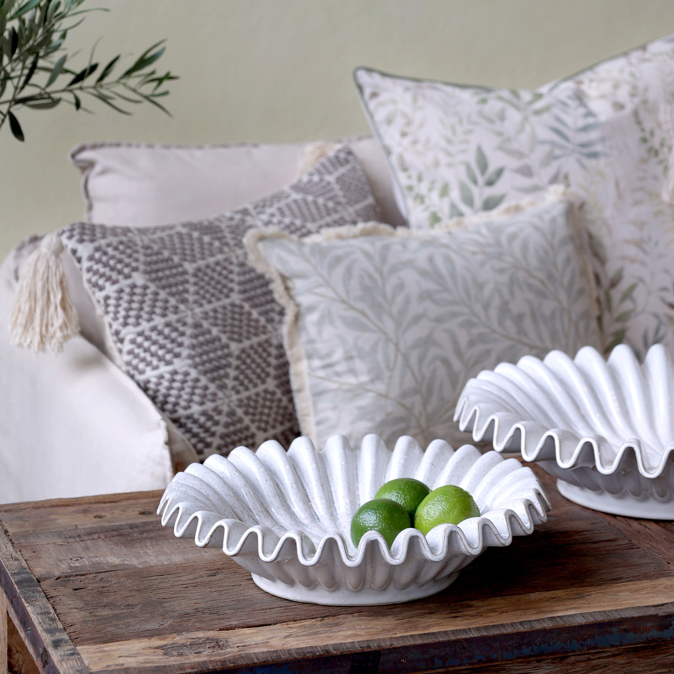 Ungewöhnliche Schale in antique creme mit geriffelter Kante - der Dekotrend und ein absolute Hingucker.