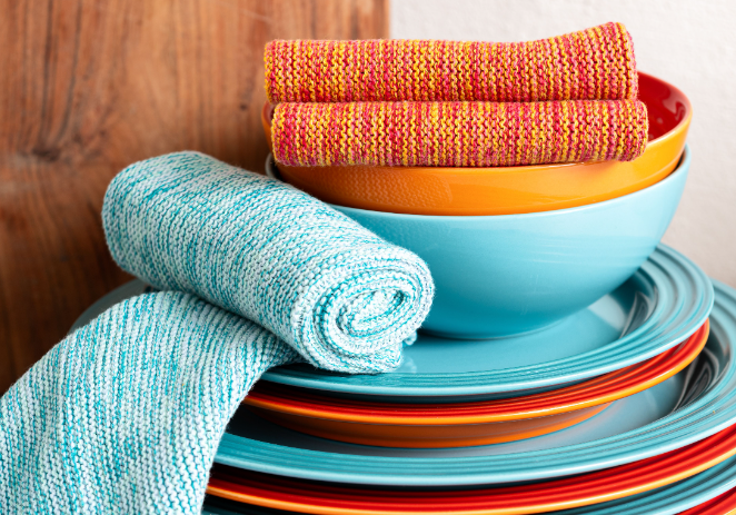 2er-Pack mehrfarbig melierte Wischtücher aus Garnresten.