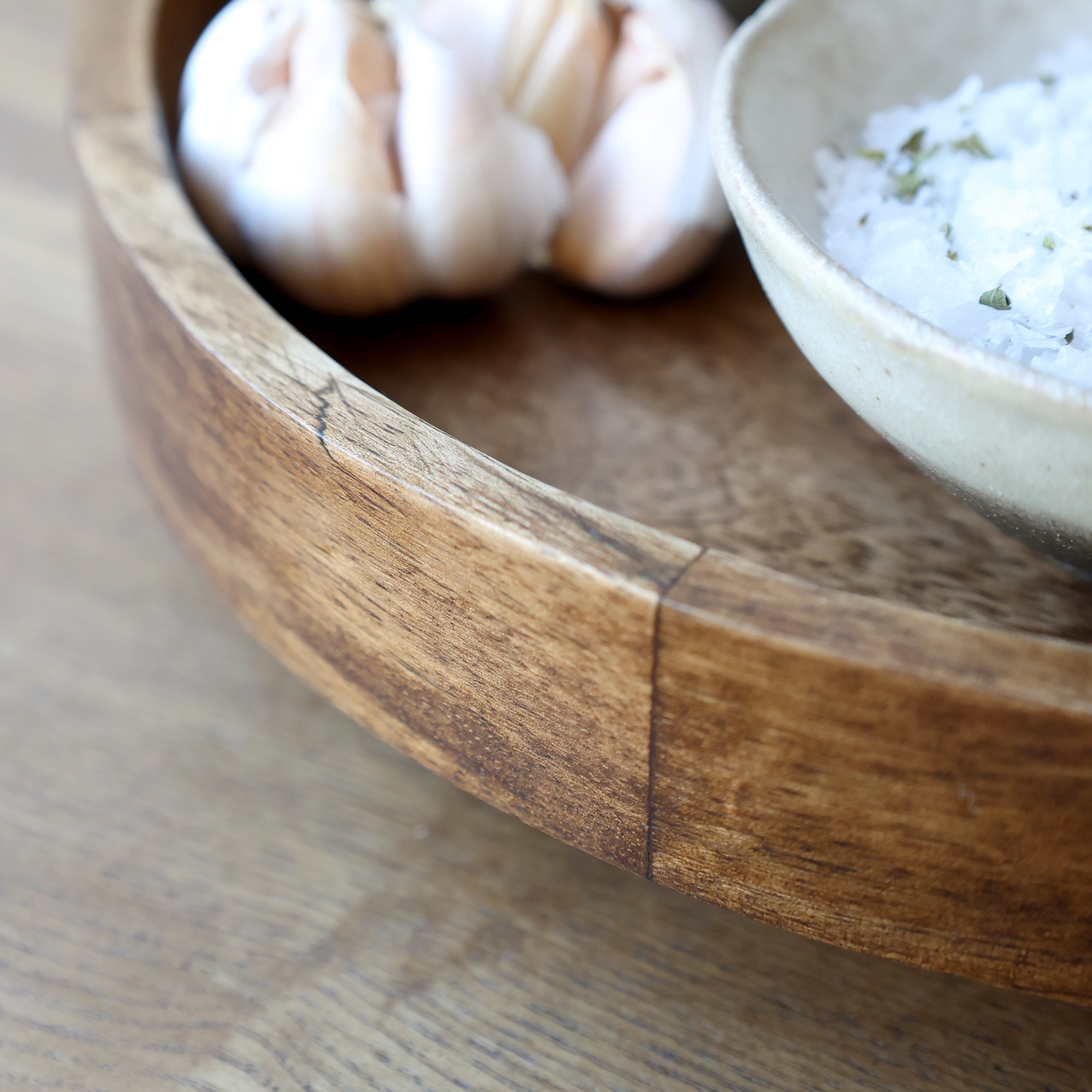 Wunderschöner Drehteller aus Holz, nicht nur ein toller Hingucker auf dem Küchentresen, sondern auch ein absolutes Ordnungstalent.