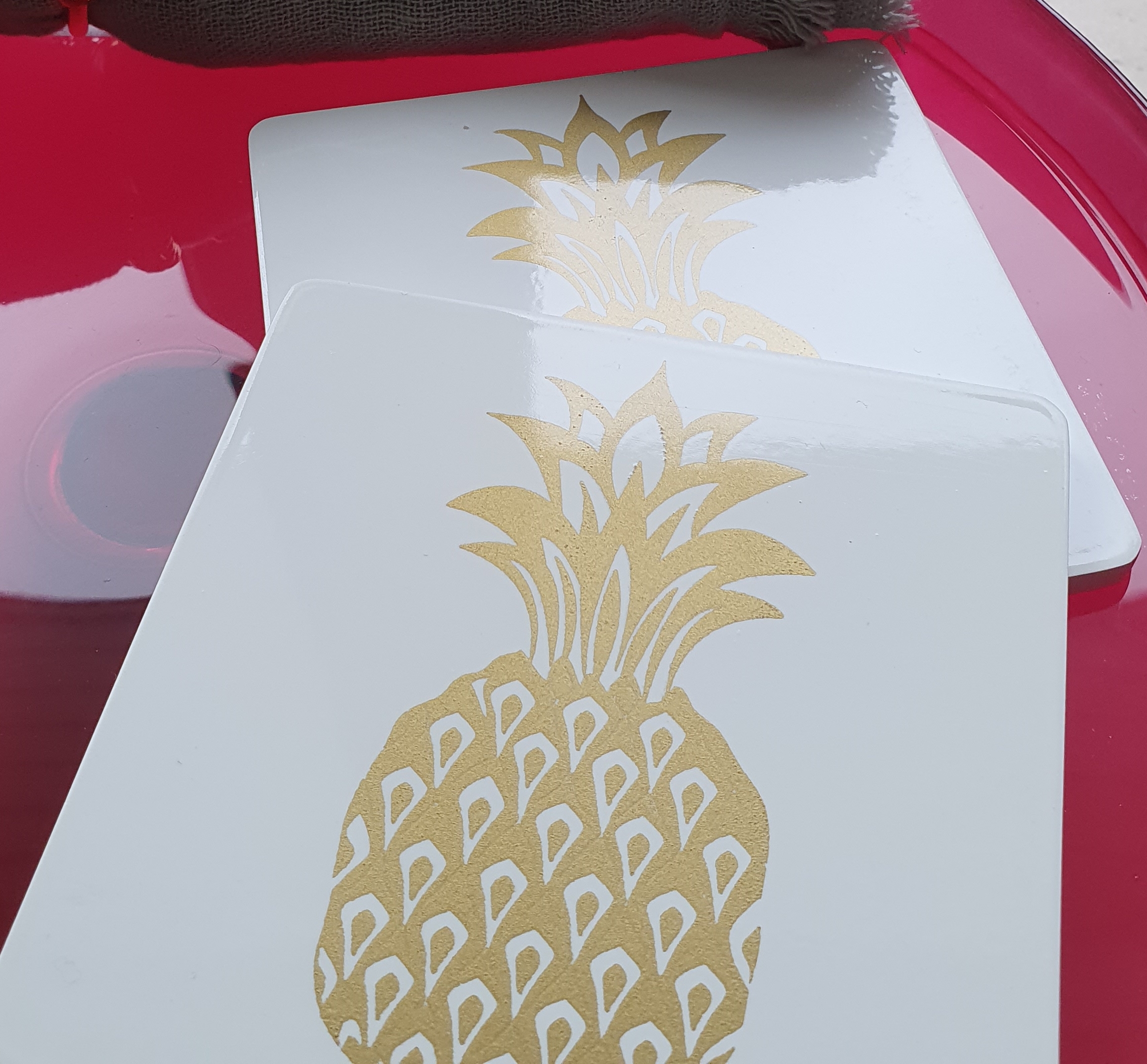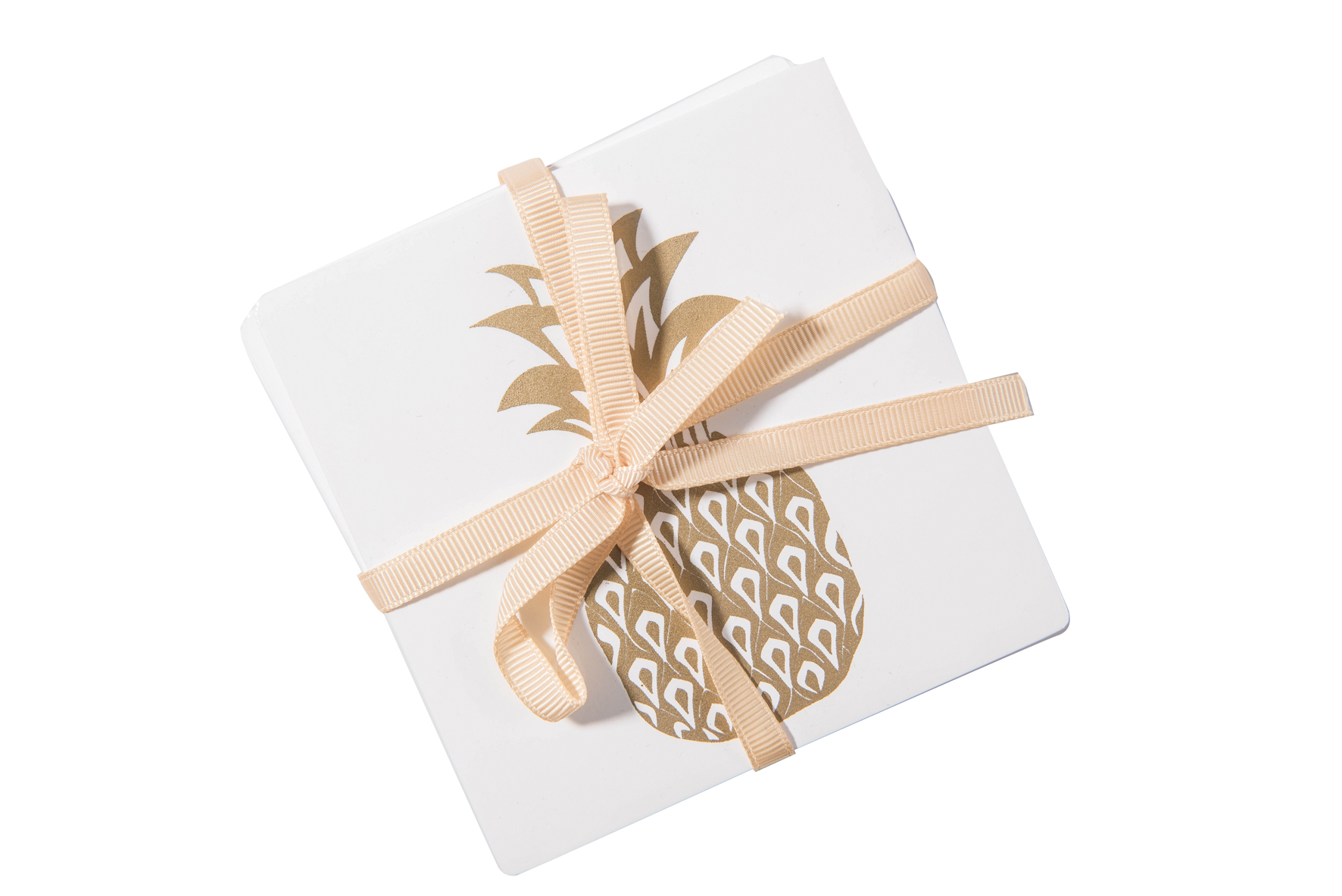 Hübsches Set aus 6 Untersetzern in weiß mit goldener Ananas
